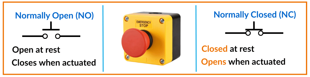Salah satu pertanyaan umum yang ditanyakan oleh pelajar dan teknisi adalah: Mengapa kontak Biasanya Tertutup (NC) selalu digunakan untuk tombol berhenti darurat dan bukan kontak Biasanya Terbuka (NO)?