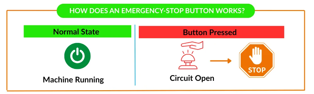 Inilah sebabnya mengapa setiap mesin dilengkapi dengan tombol berhenti darurat . Apabila terjadi sesuatu yang tidak diinginkan, operator harus dapat menghentikan mesin secara instan dan aman.